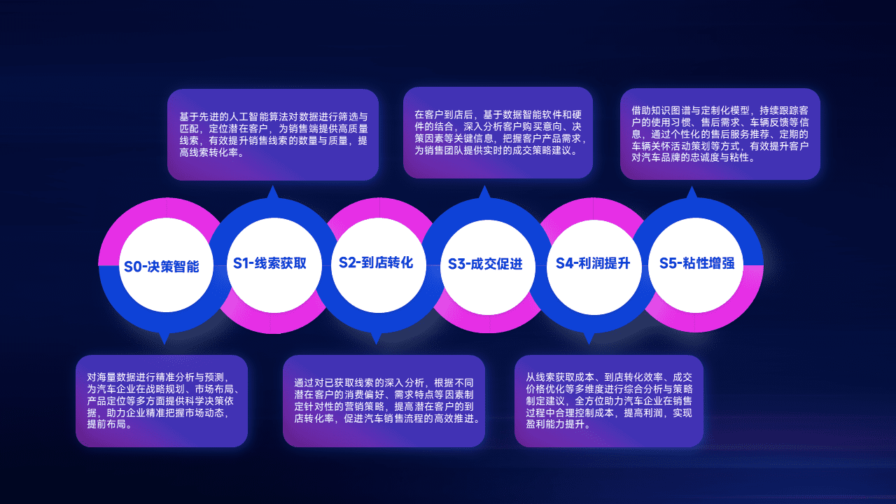 通过拓宽潜在客户来源、、优化线索分配并提高到店转化率,,,以增强销售效率。。。同时,,,,利用线索数据不断优化分析模型,,,有效提升转化率,,,扩大营销影响力。。
