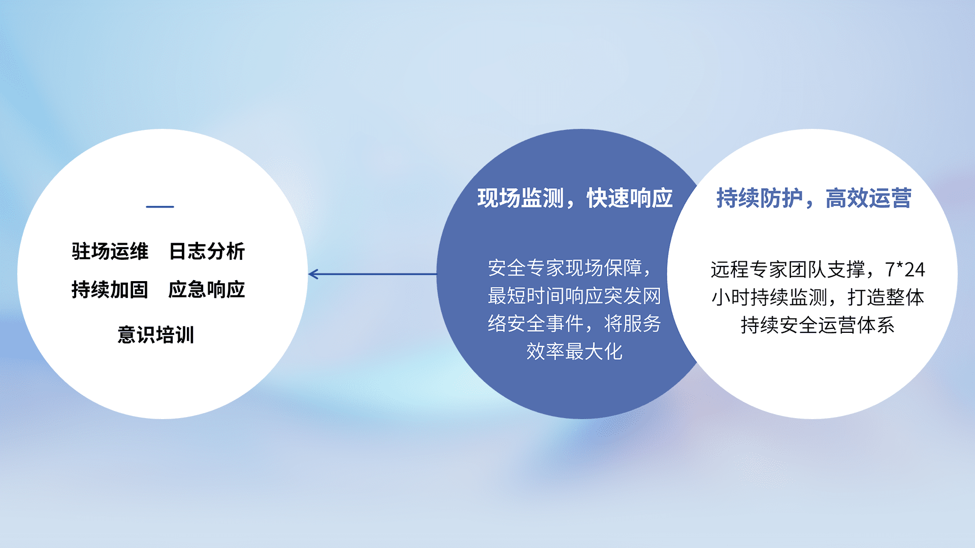 7X24小时持续监测安全事件,保持安全策略有效性,降低资产脆弱性风险,,,精准拦截黑客攻击,,,,减少被黑客利用的机会,,,第一时间遏制,,,降低损失。。。